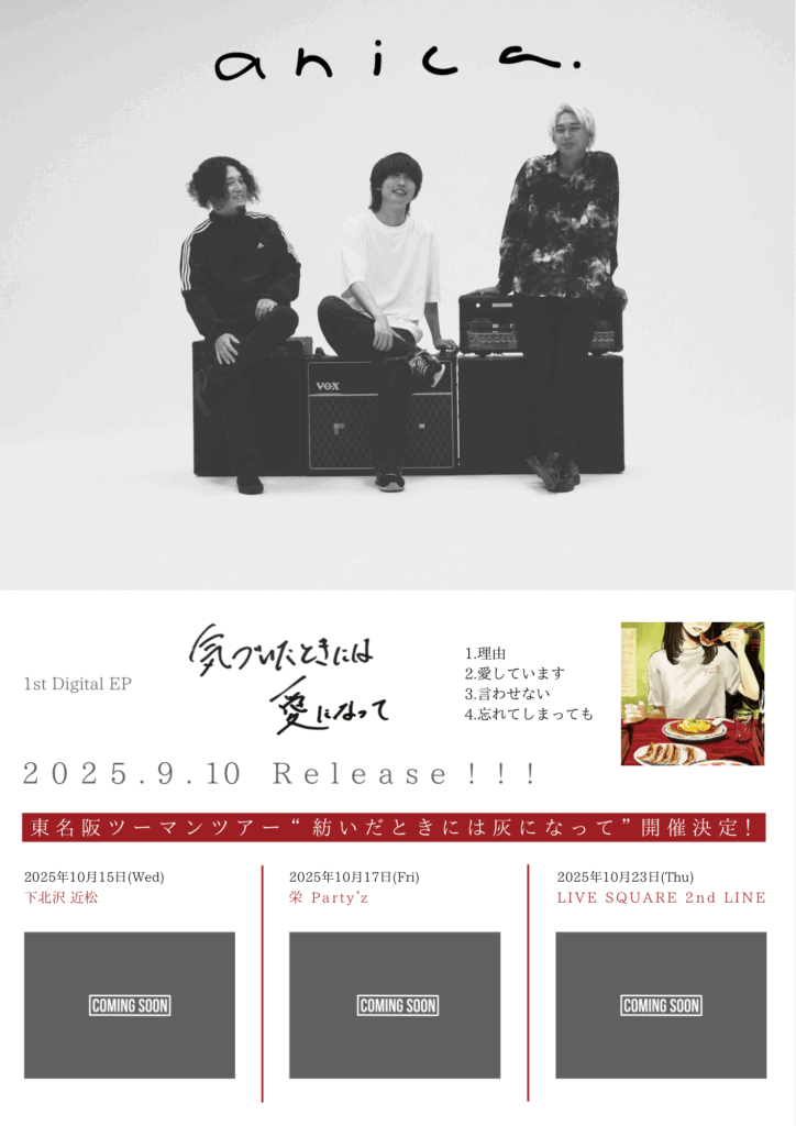 9月10日(水) anica 1st EP『気づいたときには愛になって』配信リリース決定!!